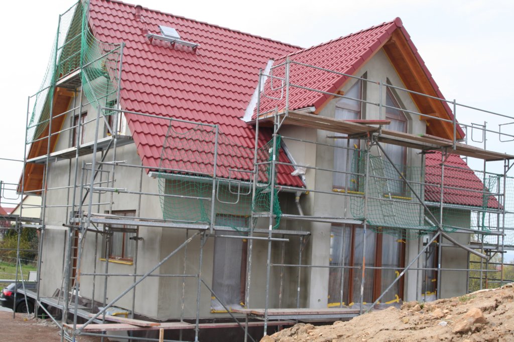Draussen schreiten die Putzarbeiten mit dem Verputzen der West- ...