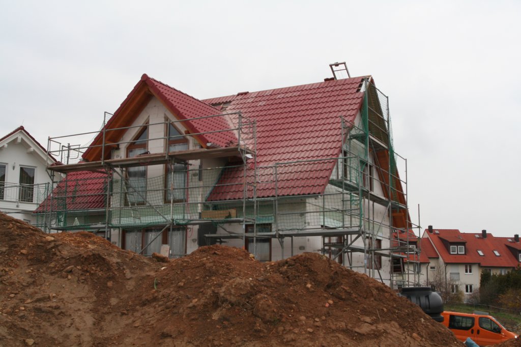Auf dem Dach geht es jetzt auch vorwärts. Die Rückseite des Hauses ist fast fertig eingedeckt.