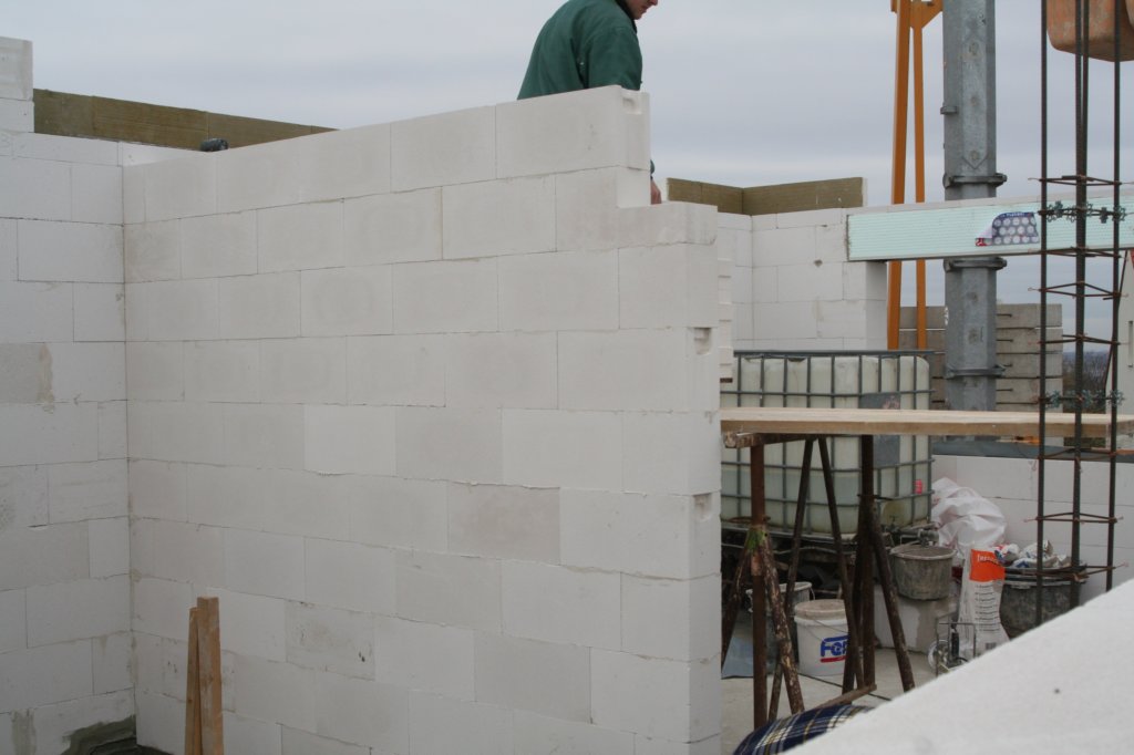 Das kleine Bad im Erdgeschoss wird fertig gemauert.