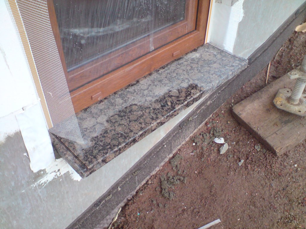 Zu Beginn der 9. Bauwoche am 7. April 2008 erhält das Haus sämtliche Fensterbänke.