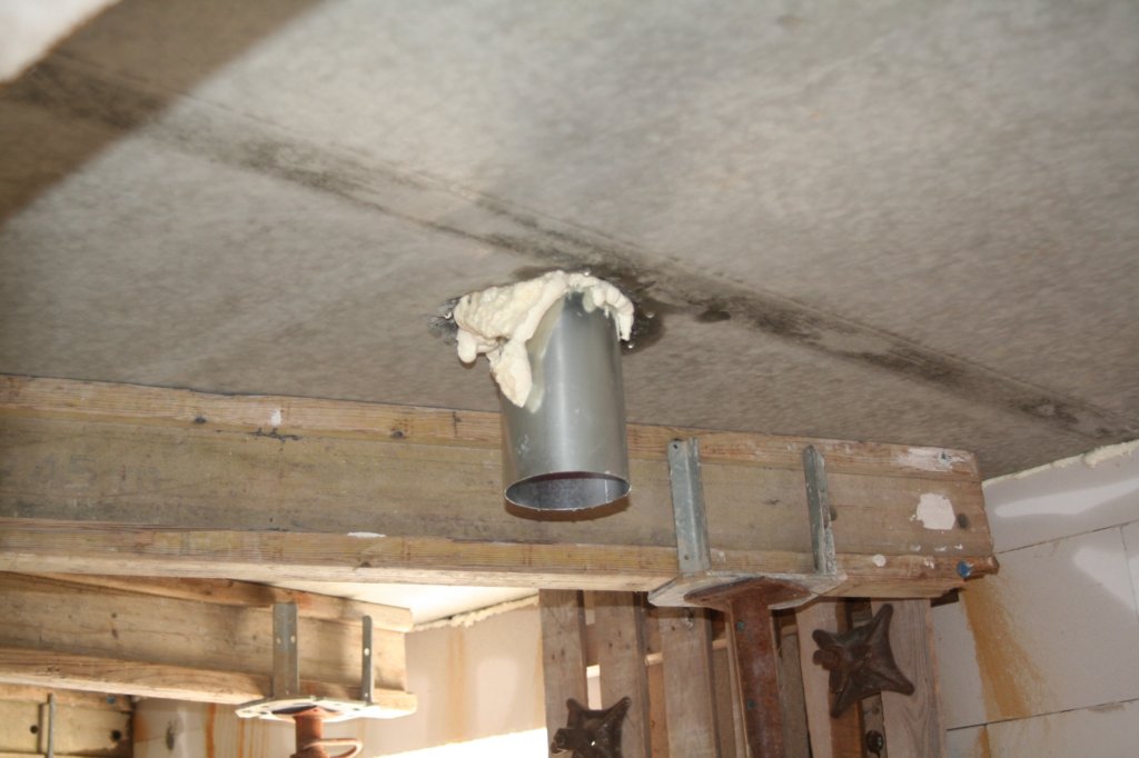Die Lüftungsrohre für Gäste- und Arbeitszimmer passieren hier kurz den erstgenannten Raum, um dann durch die Wand in den Heizungskeller zu entschwinden.