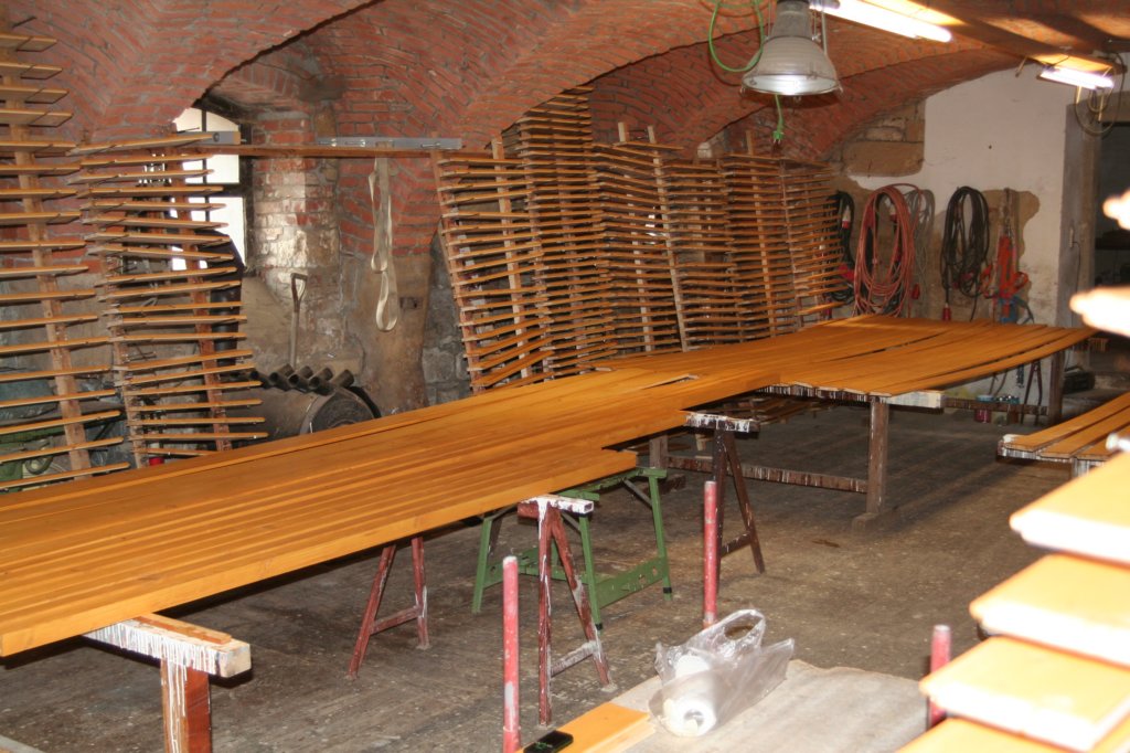 Das folgende Wochenende verbrachte der Bauherr dann bei der Holzbau Ehrig GmbH in Sobrigau, die freundlicherweise einen Raum zum Streichen der Untersichtschalung zur Verfügung stellte.