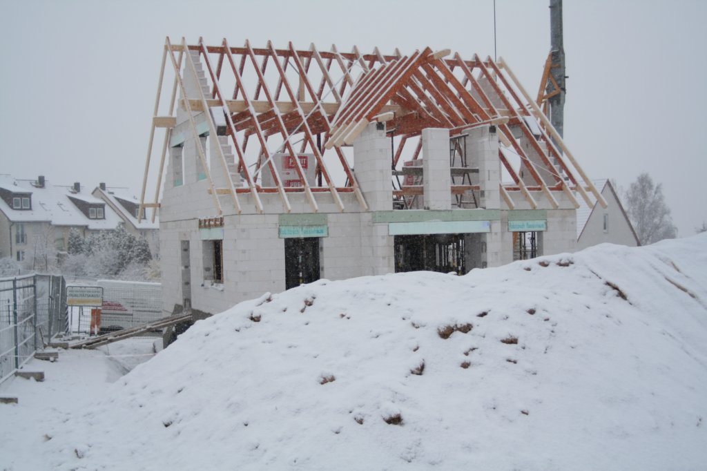 Am 19. März 2008 kriegt es das Haus erstmalig mit Schnee zu tun, der alle Arbeiten zum Erliegen bringt.